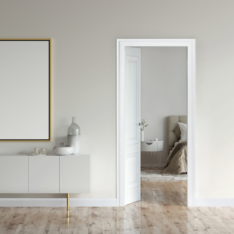 Perfil blanco de diseño tradicional y bordes curvos que se hunden progresivamente. La superficie ondulada crea dinamismo, profundidad y volumen.