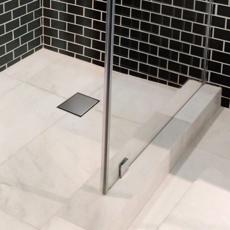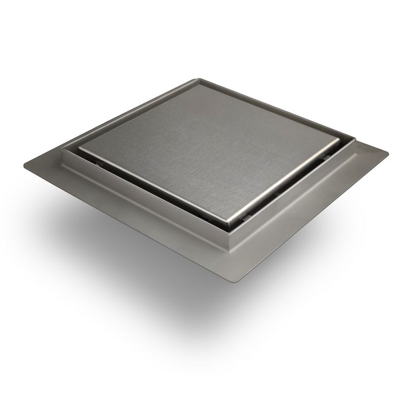 Desagüe cuadrado 2 en 1 de acero inoxidable AISI 304 que reemplaza la rejilla tradicional y crea un plano único de continuidad en el piso de la ducha, obteniendo mayor capacidad de drenaje.