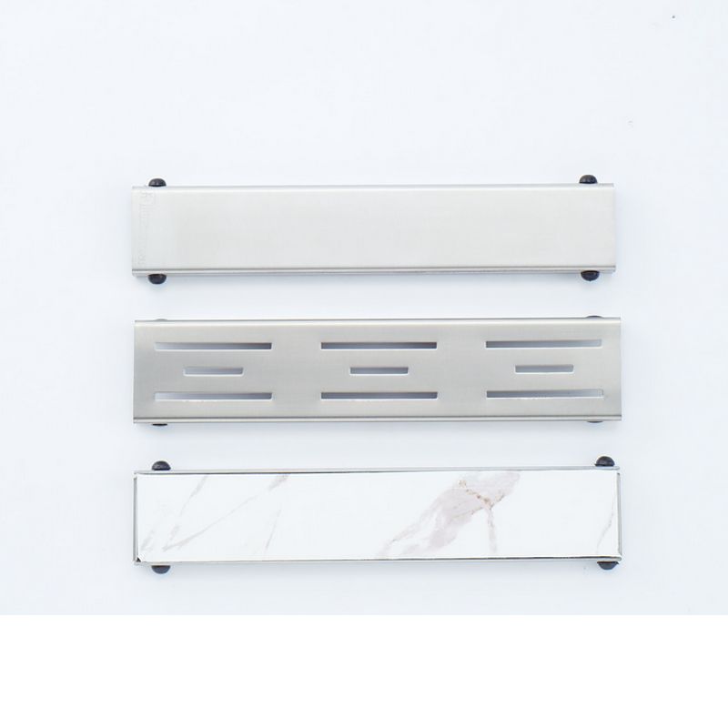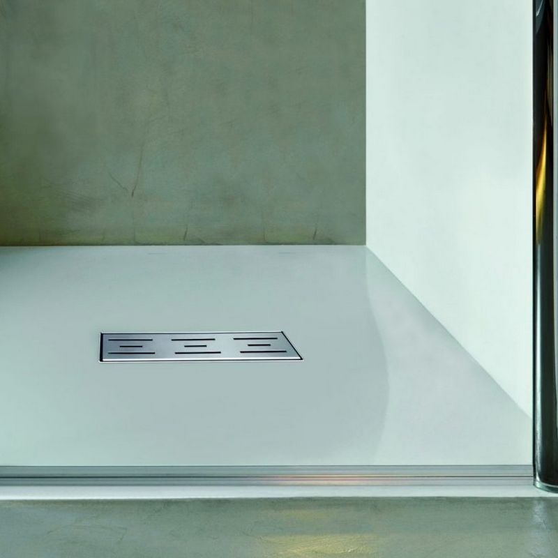 Desagüe lineal de Acero Inoxidable AISI 304 de 1mm de espesor, diseñado para reemplazar la rejilla tradicional creando un plano único de continuidad en el piso de la ducha y obtener mayor capacidad de drenaje. La instalación puede hacerse tanto en el encuentro con la pared, como en el centro de la ducha y es apta para todo tipo de revestimientos.