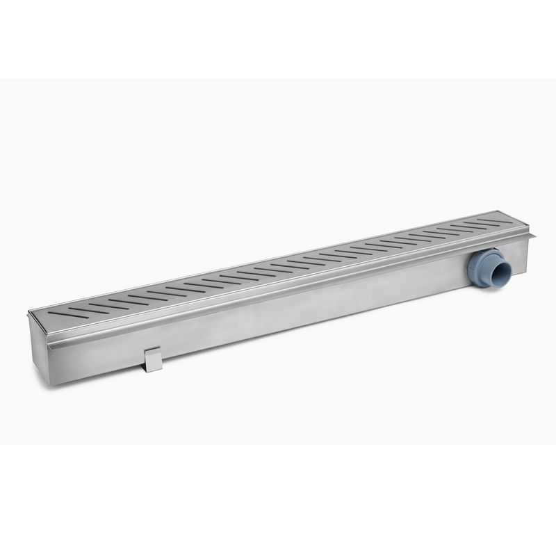 Desagüe lineal de Acero Inoxidable AISI 304 de 1mm de espesor, diseñado para reemplazar la rejilla tradicional creando un plano único de continuidad en el piso de la ducha y obtener mayor capacidad de drenaje. La instalación puede hacerse tanto en el encuentro con la pared, como en el centro de la ducha y es apta para todo tipo de revestimientos.