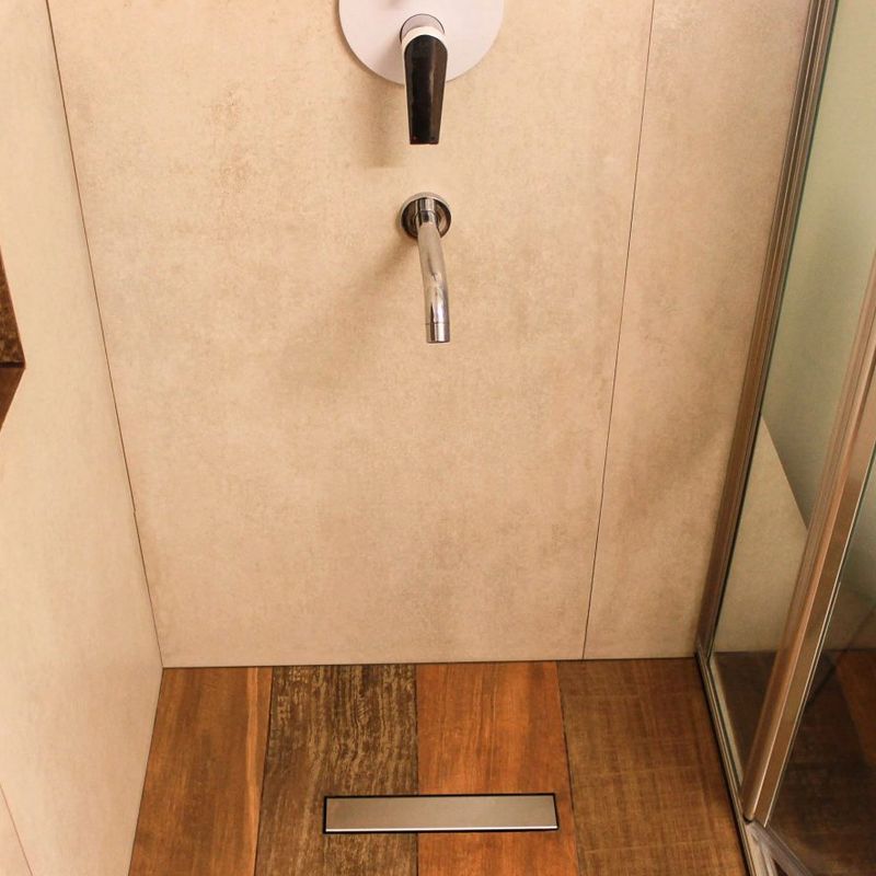 Desagüe lineal con cuerpo de polipropileno y tapa de acero inoxidable AISI 304 acabado mate de 0,8 mm de espesor, diseñado para reemplazar la rejilla tradicional creando un plano único de continuidad en el piso de la ducha y obtener mayor capacidad de drenaje.