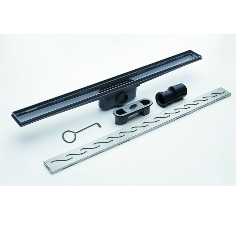 Desagüe lineal con cuerpo de polipropileno y tapa de acero inoxidable AISI 304 acabado mate de 0,8 mm de espesor, diseñado para reemplazar la rejilla tradicional creando un plano único de continuidad en el piso de la ducha y obtener mayor capacidad de drenaje.