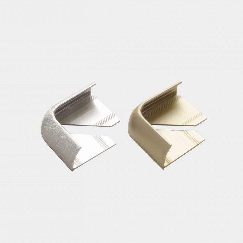 Ideal como complemento del Guardacanto Arco, accesorio para las esquinas externas que garantiza la unión prolija, mantiene la homogeneidad de las superficies y evita el corte a 45°.