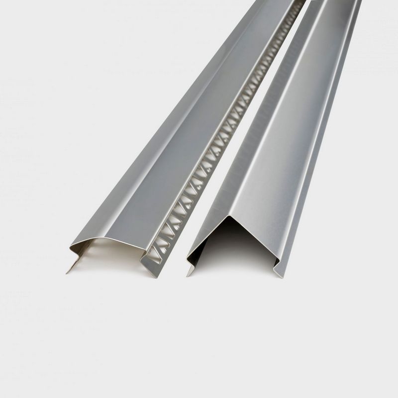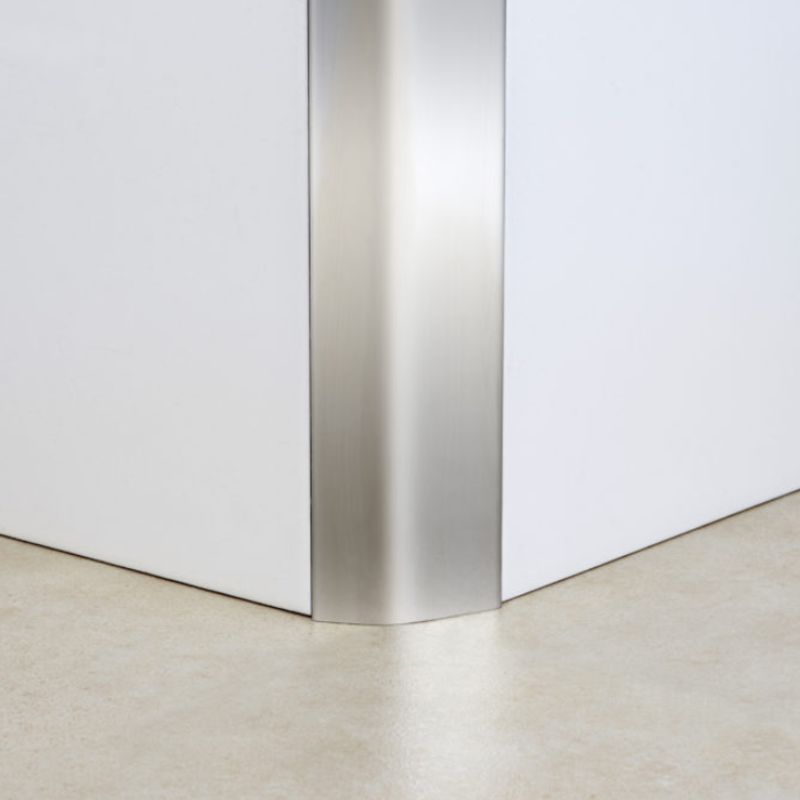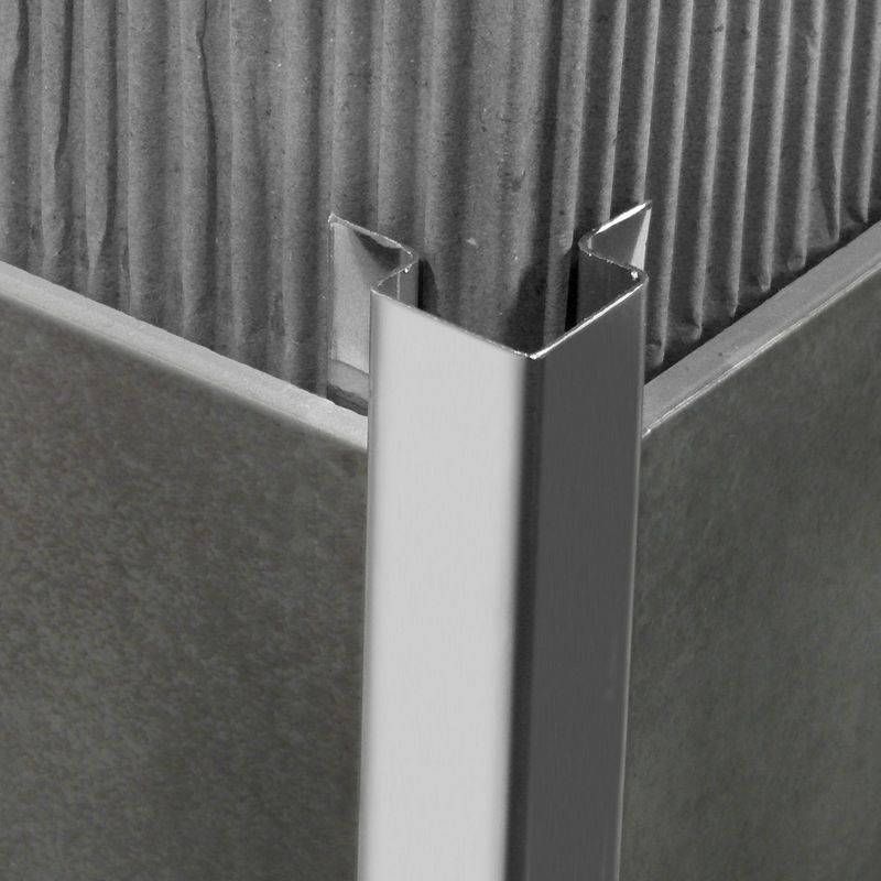 Perfil de acero inoxidable 304 de diseño cuadrado y redondeado de 0,05 de espesor. Posee gran resistencia a los golpes y protege los cantos de las esquinas expuestas a severas agresiones mecánicas. Ideal para utilizar en espacios públicos. Se colocan junto al revestimiento formando una esquina exterior simétrica.