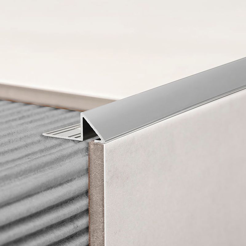 Innovador perfil de aluminio de diseño triangular que protege y decora uniones de revestimientos otorgándoles una vista elegante y vanguardista.