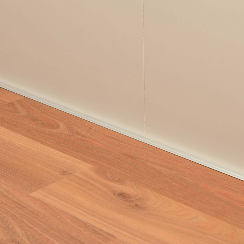 Perfil para pisos flotantes de uso perimetral que logra la perfecta unión entre pisos y paredes y oculta las imperfecciones y bordes de las placas. Se coloca en simultáneo con el revestimiento.