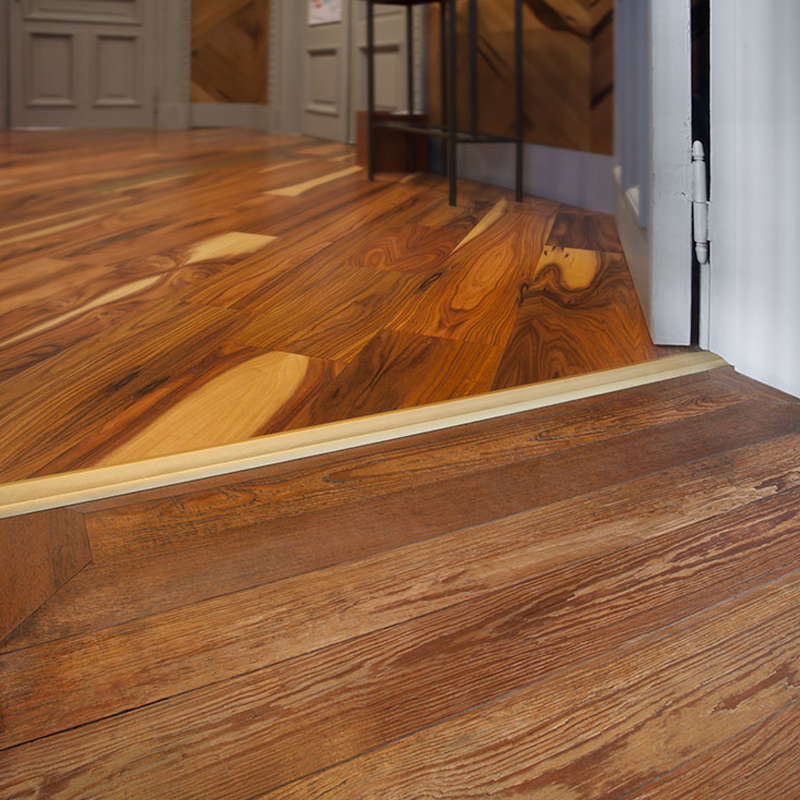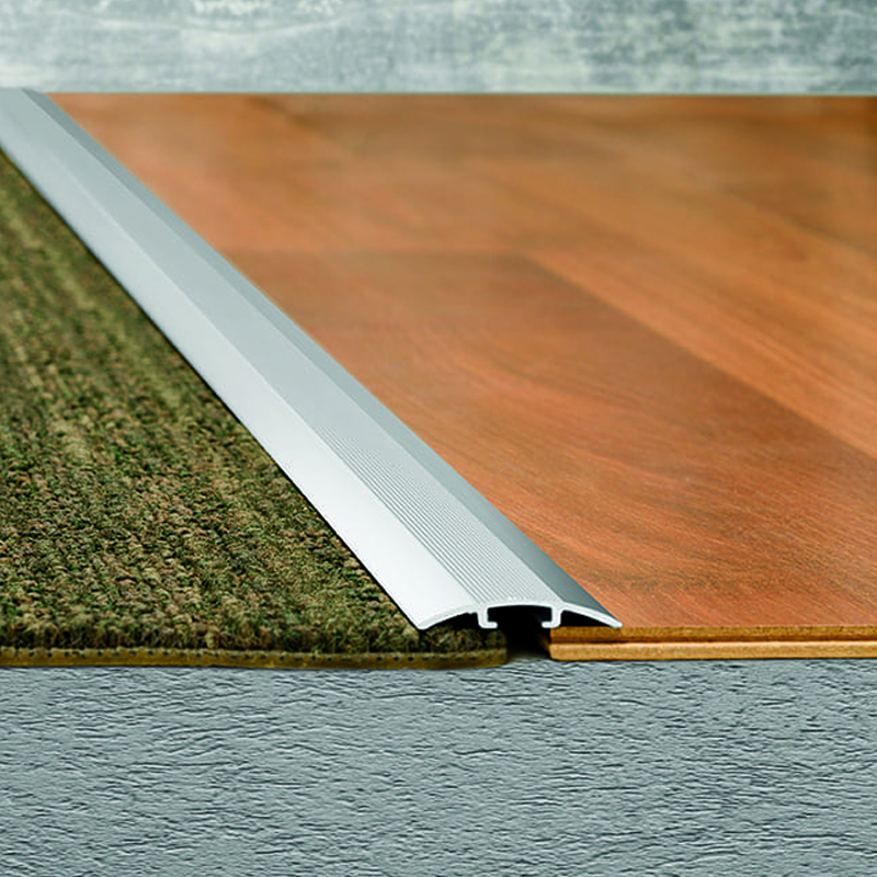 Perfil separador que permite la transición entre pisos en el mismo nivel, sin que se observen detalles de fijación.
