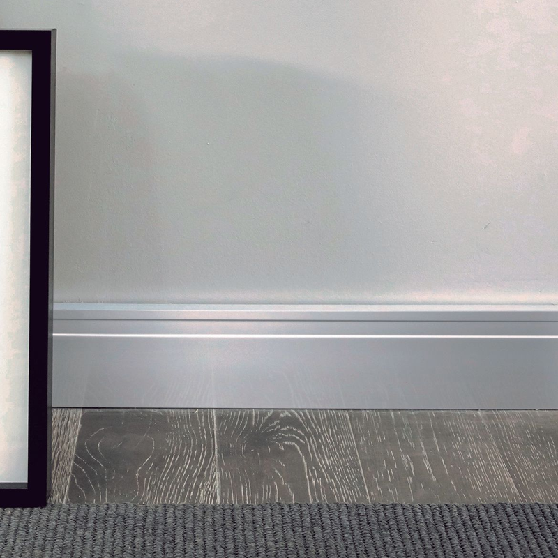 Sumado al diseño vanguardista del zócalo Line, la altura de este zócalo de 100 mm. destaca con personalidad los espacios.